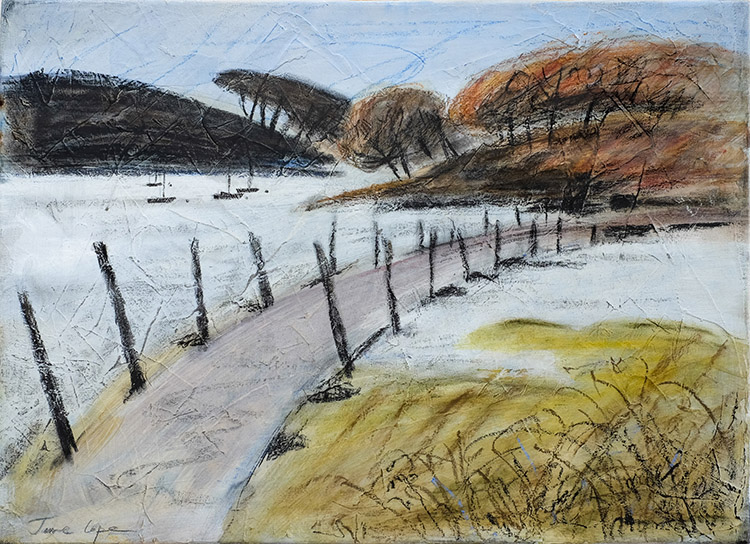 LANDSCAPE, ABSTRACT AND FIGURATIVE PAINTINGS, ILLUSTRATIONS AND PORTRAIT DEVON BASED ARTIST LIVING AND WORKING IN EXETER Jane Cope Dungeness 2, oil and mixed media on canvas, 60 x 50cm 'Dartmoor blues', oil and mixed media on canvas, 50 x 50 cm Oil and mixed media on canvas, 50 x 50cm, framed, £300 'Spiral' Acrylic, oil pastel and mixed media on canvas, 70 x 70cm, framed 'Teasles' Acrylic, mixed media on canvas, 50 x 40cm Oil and mixed media on canvas, 60 x 60cm Autumn lockdown, Oil and mixed media on canvas, 76 x 60cm Mixed media on canvas 60 x 60cm, framed, £475 'Dungeness 3', oil and mixed media, canvas, 60 x 50 cm August, ink, oil pastel and graphite on Khadi paper, 75 x 55 cm Oil on canvas L'esperance, oil and mixed media on canvas, 152 x 90cm 'Goat road', Topsham - oil and mixed media on canvas, 50 x 40cm Corvid-19, Ink and Acrylic on paper, 85 x 60cm Oil and mixed media on canvas, 76 x 60cm 'Powdermills, Dartmoor' Oil on canvas, 100 x 50cm, framed, £600